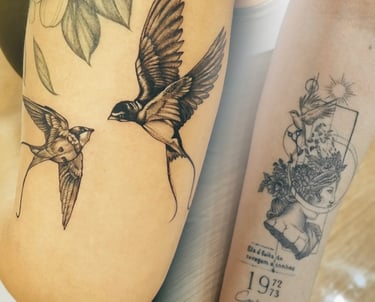 Cada tatuagem nasce de uma conversa, um desenho feito para você ou uma arte comercial que você se identifique, com atenção total e cuidado único.