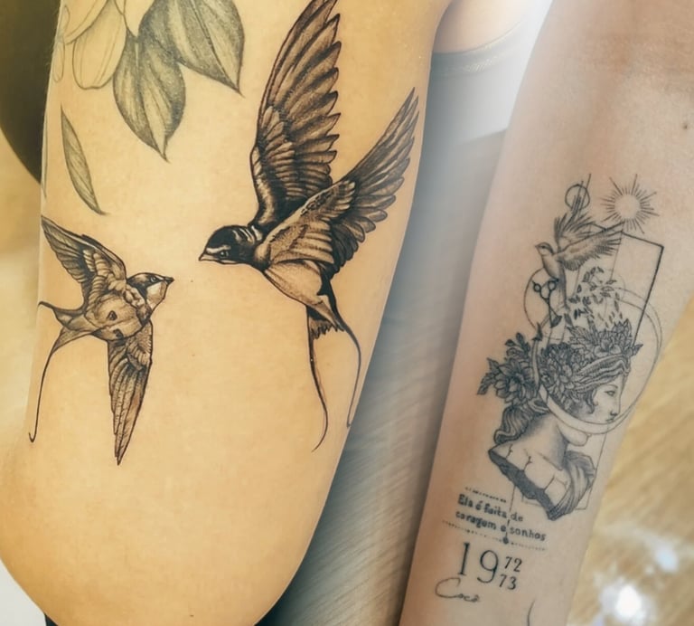 Tatuagens autorais ou comerciais que expressam sua identidade com autenticidade e arte.
